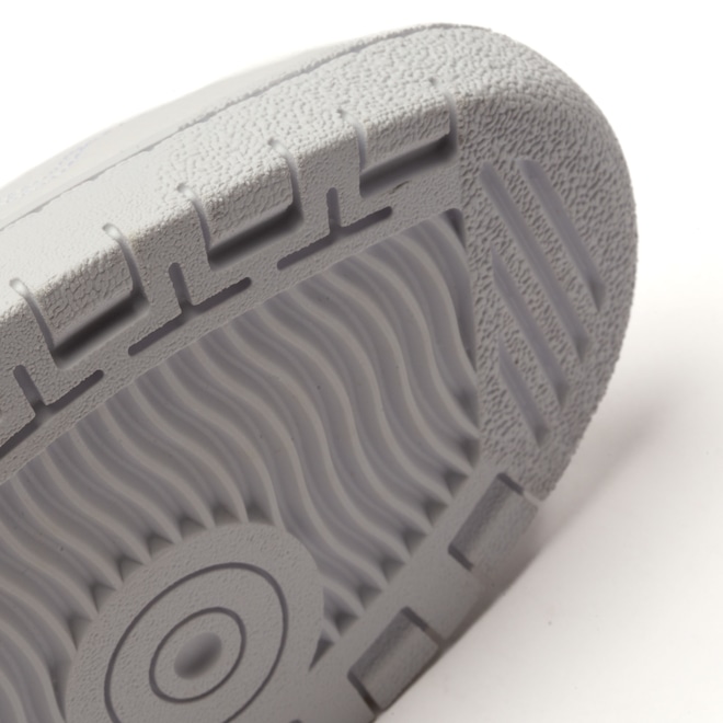 O cabedal (parte superior do calçado) é em material sintético, entressola e solado emborrachado, com lingueta flexível e macia.