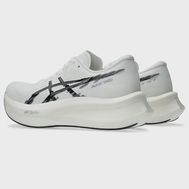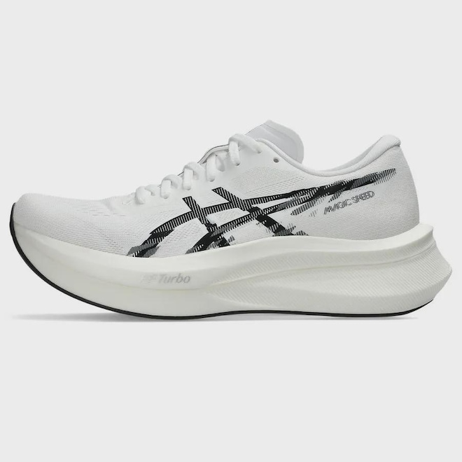 - Sobre o produto - O MAGIC SPEED™ 4 foi desenvolvido para te ajudar a conquistar suas metas durante a corrida. Além da experiência de amortecimento mais suave, este calçado ajuda a estabilizar melhor sua passada. Com uma placa de carbono dentro da entressola para garantir estabilidade e impulsionar seus passos. Cria uma pisada mais macia e propulsora durante a fase inicial do ciclo de pisada. Além disso, este calçado foi atualizado com amortecimento FF TURBO™, que proporciona a sensação de uma corrida mais responsiva e energizada em treinos e competições. Cabedal em Engineered Mesh Melhora a respirabilidade Pelo menos 50% do material principal do cabedal é feito com materiais reciclados para reduzir desperdícios e emissões de carbono A palmilha é confeccionada com um processo de tingimento que reduz o uso de água em aproximadamente 33% e as emissões de carbono em aproximadamente 45% se comparada às tecnologias de tingimento convencional Placa de carbono de ponta a ponta Adiciona estrutura e melhora a propulsão na fase inicial do ciclo de pisada. Amortecimento FF BLAST™ TURBO Nosso material de amortecimento mais leve e flexível, 33% mais leve e 13% mais responsivo que o amortecimento FF BLAST™ Solado de borracha ASICSGRIP™ Melhora a tração.- ref: M16M08