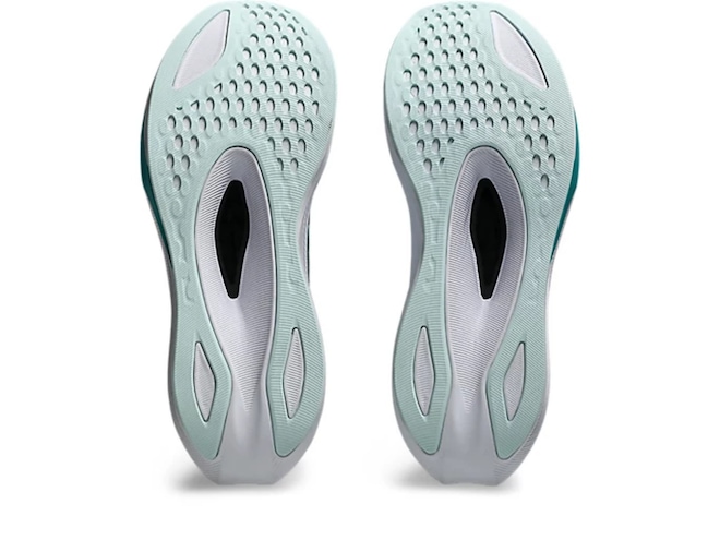 Uma placa de carbono esculpida foi projetada para ajudar a melhorar a estabilidade e impulsionar o pé para a frente. Isso contribui para uma experiência mais suave e propulsiva durante a fase de impulsão da passada.