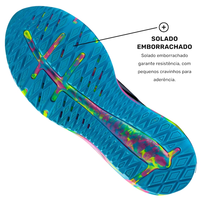 O cabedal (parte superior do calçado) em material têxtil proporciona suporte, apoio e durabilidade. Sua entressola em EVA e solado emborrachado, garantindo maior estabilidade e aderência em todos os momentos.