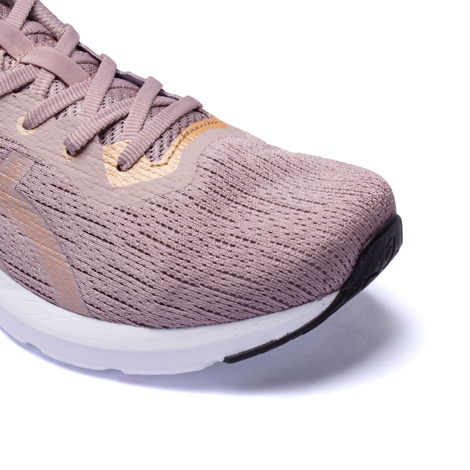 Possui cabedal (parte superior do calçado) é em mesh (malha de tramas abertas) que promove mais respirabilidade durante o uso, a sua entressola é em EVA e palmilha removível e macia.