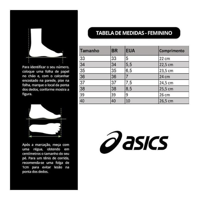 Estampado na LinguetaGarantia do Fornecedor Contra Defeito de Fabricação SAC do Fornecedor ASICS: 0800-722-7427 ou através do e-mail fale.conosco@asics.com Pisada Neutra Perfil Velocidade