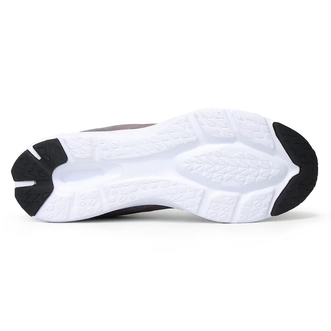 O cabedal (parte superior do calçado) é em mesh (malha de tramas abertas) o que promove maior respirabilidade durante o uso, a entressola é em EVA e seu solado tem detalhes emborrachados.