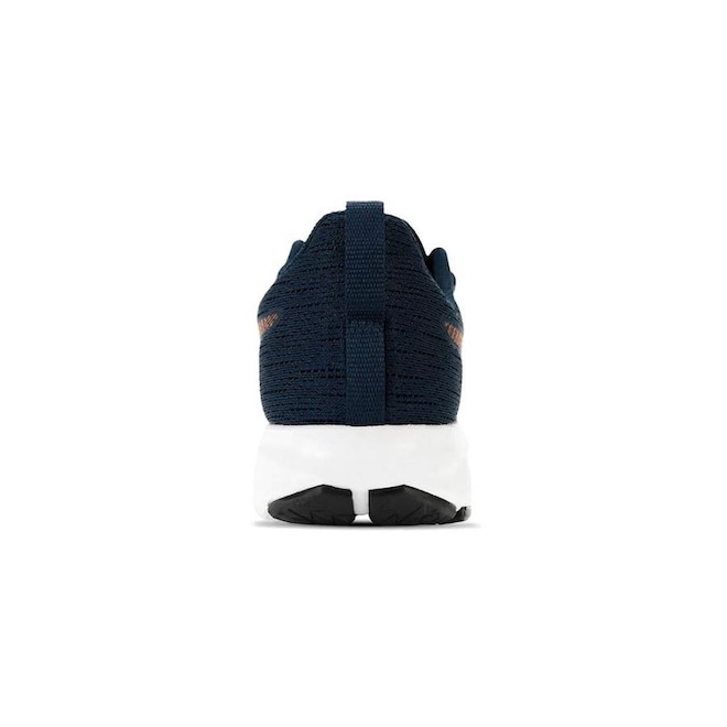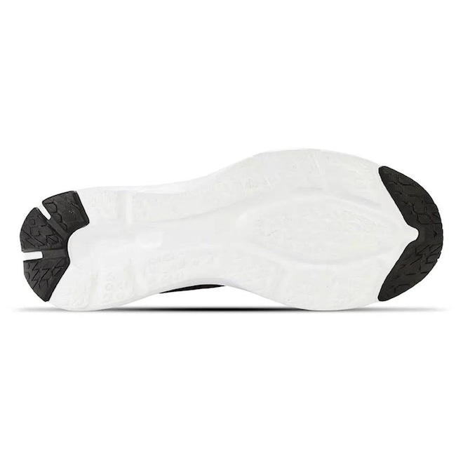 O cabedal (parte superior do calçado) é em mesh (malha de tramas abertas) o que promove maior respirabilidade durante o uso, a entressola é em EVA e seu solado tem detalhes emborrachados.
