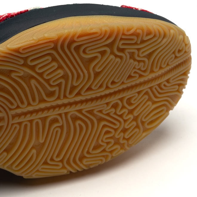 A entressola macia e elástica adiciona uma sensação de conforto como de travesseiro, enquanto a placa de fibra de carbono no mediopé reforça a estabilidade em quadra.