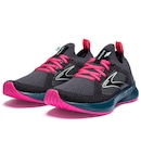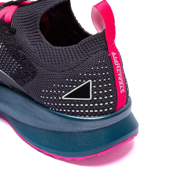 O cabedal (parte superior do tênis) é em tecido knit peça única com lingueta integrada que oferece um calce mais firme e seguro.
