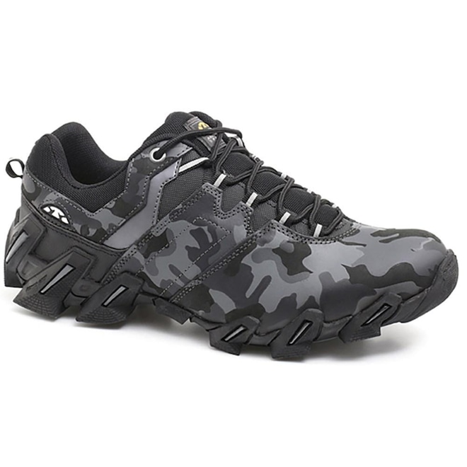 Possui cabedal confeccionado em couro, resistente para uso em ambientes hostis, palmilha Ortho Comfort com orifícios para a respirabilidade dentro do calçado e solado em borracha Power Grip que otimiza a tração no solo com ranhuras profundas.