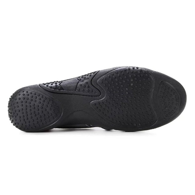 O solado de borracha antiaderente proporciona mais tração e segurança nos mais variados terrenos e condições climáticas.