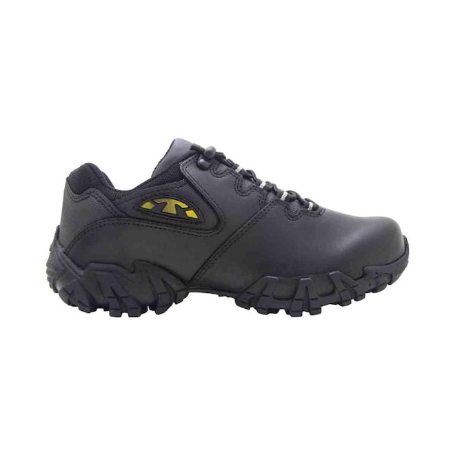 Ele protege completamente o pé, seja contra possíveis pedras que possam cair em cima do pé, bem como qualquer terreno que tenha de passar.