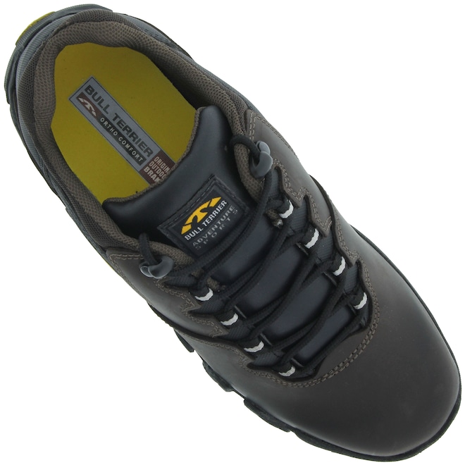 Com design robusto e moderno, esse Bull Terrier Bruce Low é a opção perfeita para você que busca por durabilidade, conforto e estabilidade simultaneamente. Seu cabedal (parte superior do tênis) é em couro para resistência e proteção nos dias úmidos. A parte interna é em material têxtil com reforço acolchoado e sua palmilha é anatômica e durável, graças à tecnologia Ortho Comfort. O ajuste do Tênis Bull Terrier por cordão simétrico conta com detalhes refletivos que aumentam a visibilidade em locais de pouca luz.