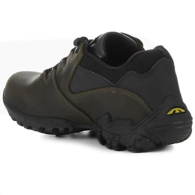 Com design robusto e moderno, confeccionado em couro com detalhes em mesh, possui palmilha em EVA revestida de sintético e solado borracha antiderrapante.