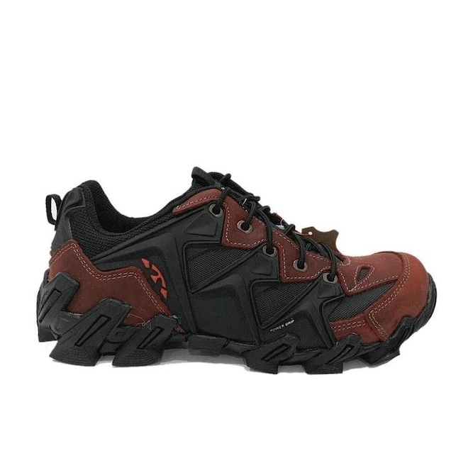 Já o solado de borracha, traz o sistema Power Grip, que garante melhor agarre e aderência em diferentes tipos de terreno.