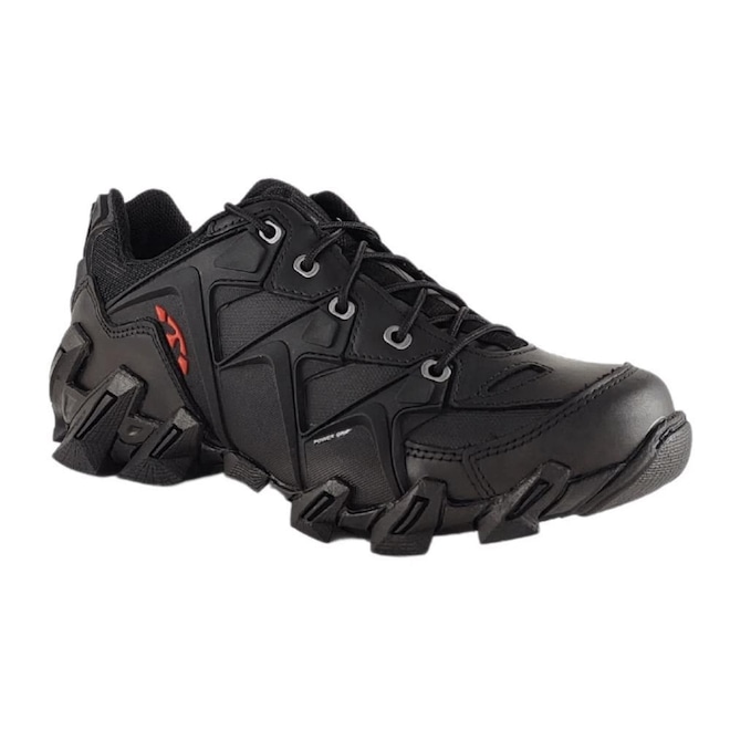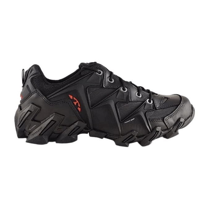 Já o solado de borracha, traz o sistema Power Grip, que garante melhor agarre e aderência em diferentes tipos de terreno.