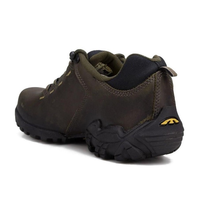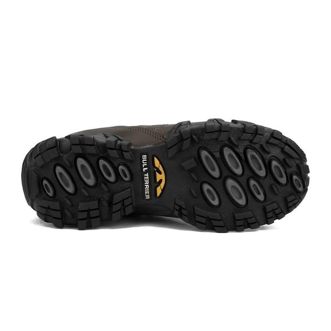 Possui sola com formato tratorado com a tecnologia POWER GRIP que garante mais aderência e segurança ao caminhar em terrenos acidentados.
