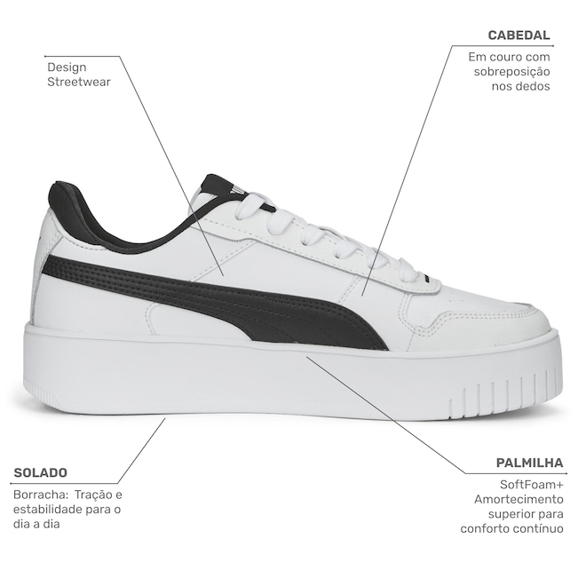 A Carina Street tem um design inspirado no streetwear em combinação com um verdadeiro perfil de plataforma, proporcionando a escolha perfeita para o seu look do dia a dia. O cabedal todo em couro é inspirado no streetwear com sobreporef: M11PL0