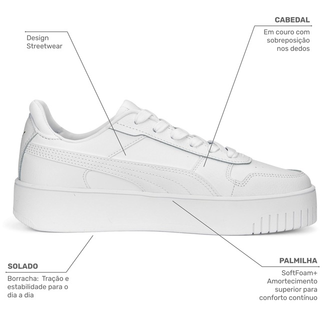 A Carina Street tem um design inspirado no streetwear em combinação com um verdadeiro perfil de plataforma, proporcionando a escolha perfeita para o seu look do dia a dia. O cabedal todo em couro é inspirado no streetwear com sobreporef: M11PL0