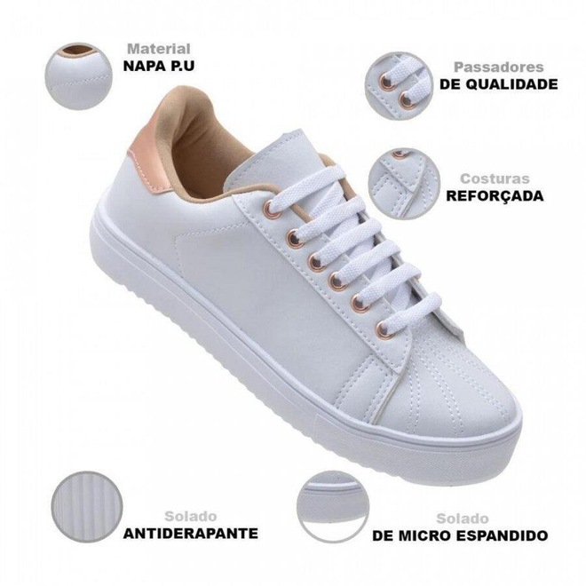 Seu design arrojado, faz com que o tênis feminino tenha muito conforto, perfeita para o dia-a-dia!