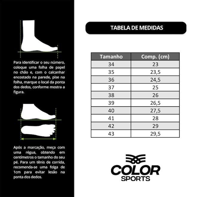 Conheça o Tênis Color Sports CS Move, o tênis que te move! Este modelo é perfeito para quem busca conforto, estilo e desempenho em todas as ocasiões! Com um design moderno e discreto, esse tênis foi desenvolvido para garantir estabilidade e suavidade durante suas atividades, seja no esporte ou no dia a dia. Seu cabedal em tecido e o interior acolchoado, proporcionam uma sensação de conforto desde o primeiro uso. A palmilha macia, a entressola e o solado em borracha de alta qualidade oferecem a combinação ideal entre resistência e leveza, reduzindo o esforço e aumentando sua eficiência. O CS Move é a escolha inteligente para quem quer versatilidade, qualidade e bem-estar, com um calçado que se adapta ao seu ritmo de vida. Invista no seu conforto e estilo com o Tênis Color Sports e transforme a sua rotina com praticidade e performance! Nome: Tênis Color Sports CS Move Gênero: Feminino Indicado para: Casual/Dia a Dia/Treino/Caminhada Cabedal: Tecido, com forro interno acolchoado Entressola: Borracha, mais leveza e maciez Solado: Borracha resistente a abrasão Palmilha: Macia e confortável Garantia: Produto original contra defeito de fabricação em até 90 dias após o recebimento da mercadoria Origem: Nacional Marca: Color Sports