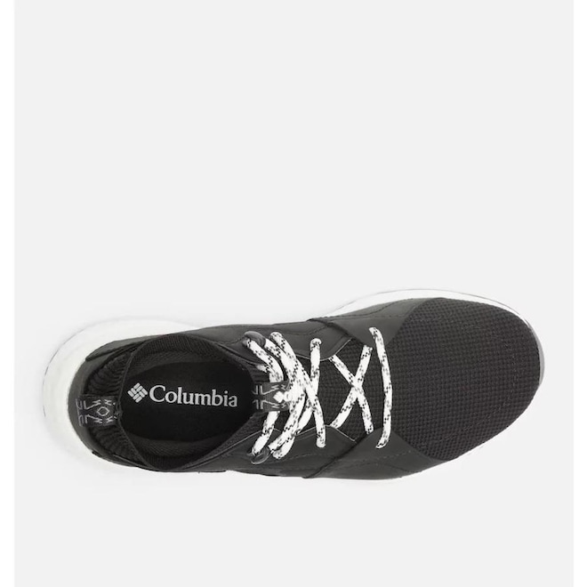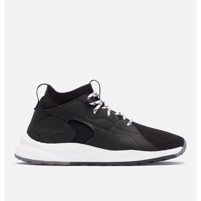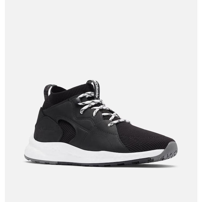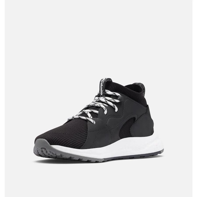 Calçado em malha com sobreposições de couro, modelo confortável e durável.