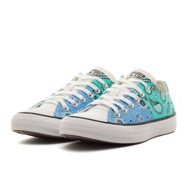 Tênis da linha All Star Chuck Taylor, a mais tradicional da marca Converse.Modelo cano baixo, confeccionado em tecido lona com estampa de Bandana Patchwork, também conhecida como Paisley, em dois tons de .