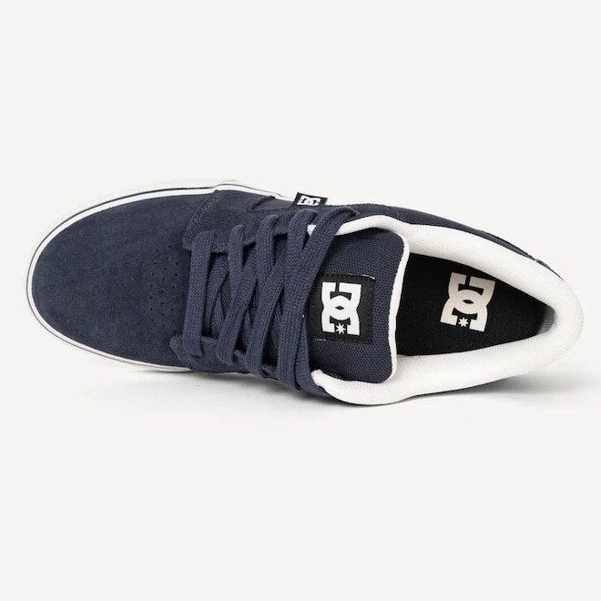 Tênis Dc Shoes com cabedal em material não natural e lona, língueta e colarinho extra acolchoados para proporcionar mais conforto para os pés, construção vulcanizada, orifícios frontais para melhor respiração, logotipia dcshoecousa na lateral traseira, língueta e colarinho em mesh para maior conforto e solado com alta resistência à abrasão.