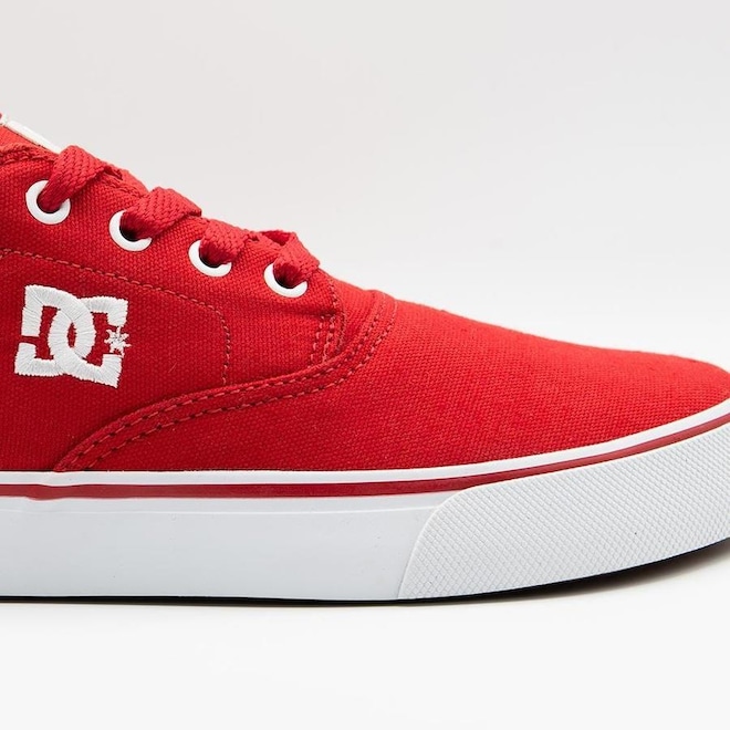 Tênis Dc Shoes com cabedal em lona para maior conforto, construção vulcanizada para maior durabilidade, forro em mesh para melhor absorção de suor, solado com alta resistência à abrasão, logo bordado na laterel e palmilha de EVA com 8mm de espessura.