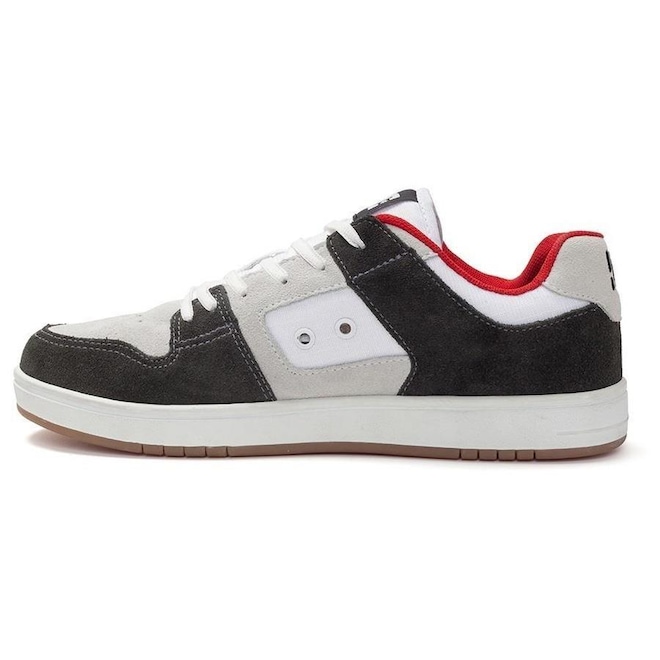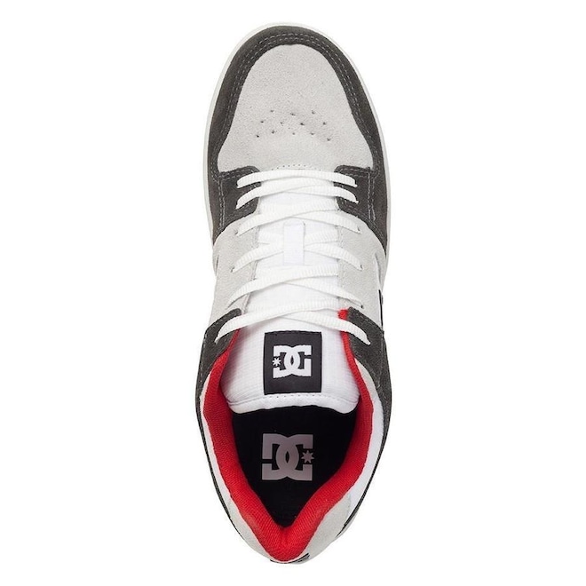 Tênis DC Shoes com colarinho acolchoado com espuma e língua para maior conforto, cintas de centragem da língua, forro em mesh para maior conforto, logo do trimestre TPR injetado, forro de meia em EVA, sola de borracha pegajosa resistente à abrasão, banda de rodagem padrão de pilula, marca registrada da DC e etiquetas personalizadas.