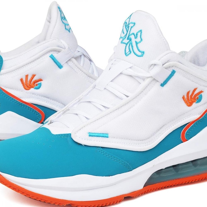 Solado: TPU com padrão de tração testado e específico para basquete, oferecendo durabilidade e alto desempenho.