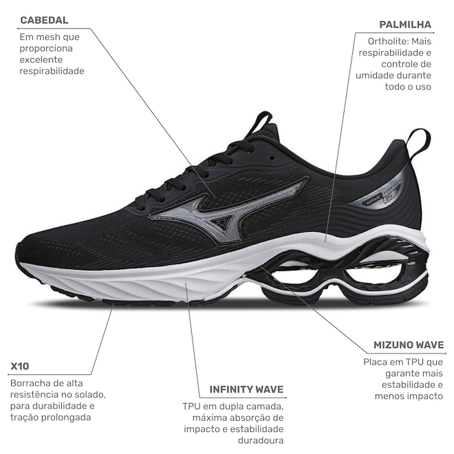 O Mizuno Wave Frontier 15 é um tênis de corrida de alta performance projetado para corredores que buscam uma experiência de corrida suave e confortável. Com sua combinação de tecnologias avançadas de amortecimento, ajuste e suporte, o Mizuno Wave Frontier 15 é uma escolha ideal para corridas de longa distância e treinos intensos. Possui as tecnologias, Infinity Wave, Mizuno Wave, X10 e Ortholite