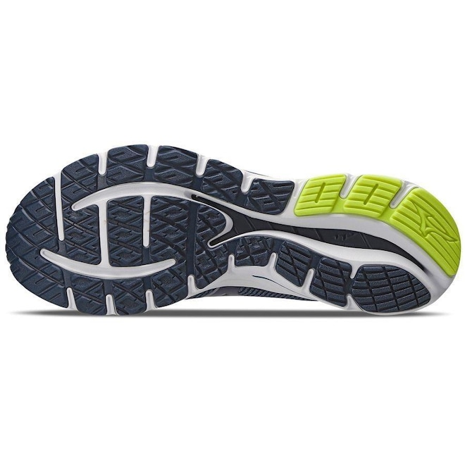 Mizuno Wave: Esta tecnologia fundamental está estrategicamente localizada na parte de trás da entressola. A placa em TPU garante o ótimo equilíbrio entre amortecimento e estabilidade. Sua função principal é absorver e dispersar o choque de cada pisada, protegendo o calcanhar e promovendo uma transição mais segura.