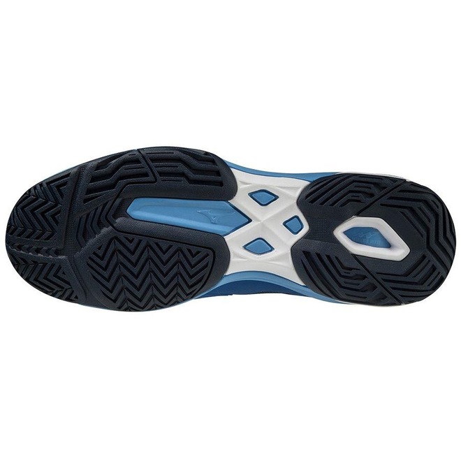 Na entressola, o produto conta com EVA com tecnologia MIZUNO ENERZY na parte do calcanhar, possibilitando um alto nível de retorno de energia e maior responsividade do primeiro saque ao último ponto.