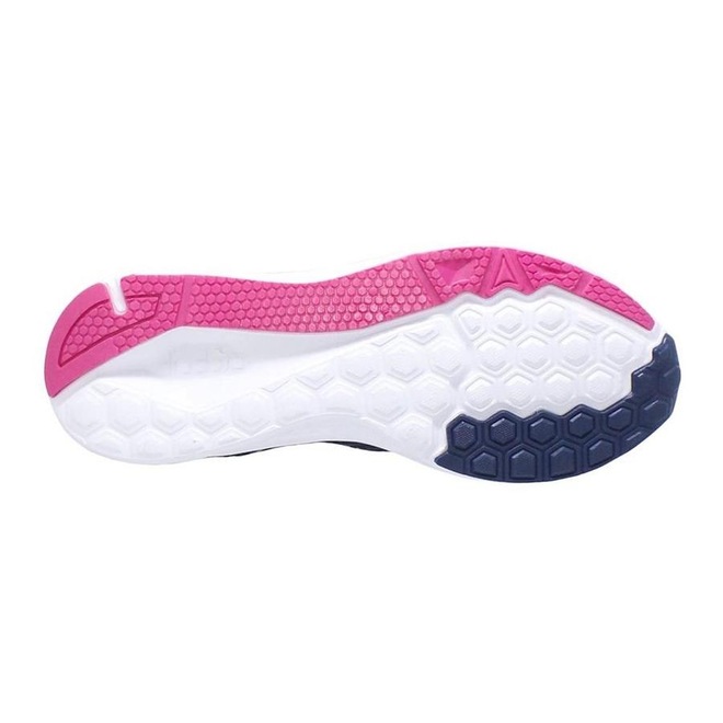 O modelo conta com entressola em Eva o que proporciona melhor amortecimento e solado emborrachado para melhor aderência.