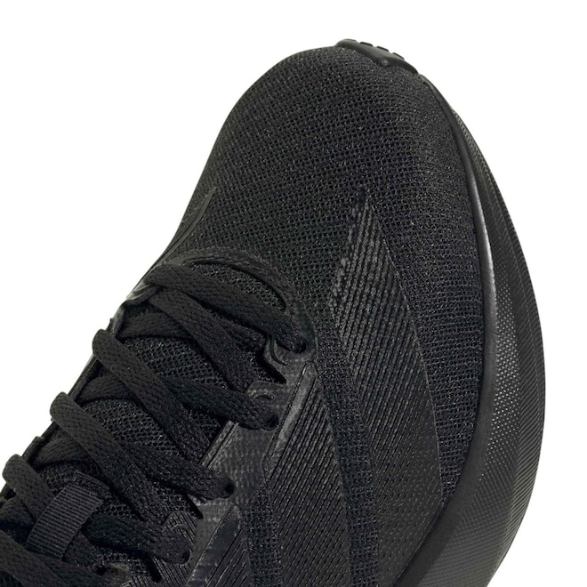 Sistema de cadarço tradicional que permite ajuste preciso, mantendo o pé firme em corridas curtas ou longas.