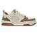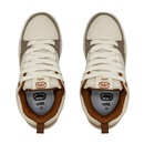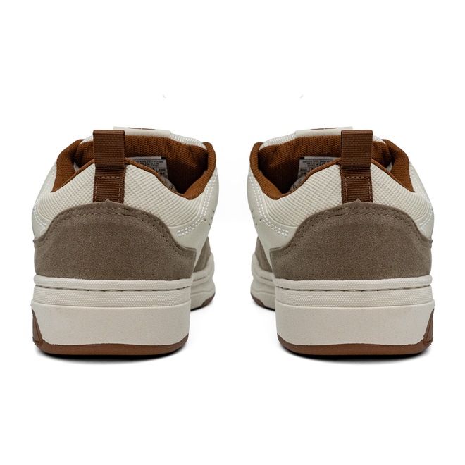 • Cabedal em Sintético: Material resistente com acabamento em branco e detalhes em caramelo, garantindo durabilidade e visual moderno.
