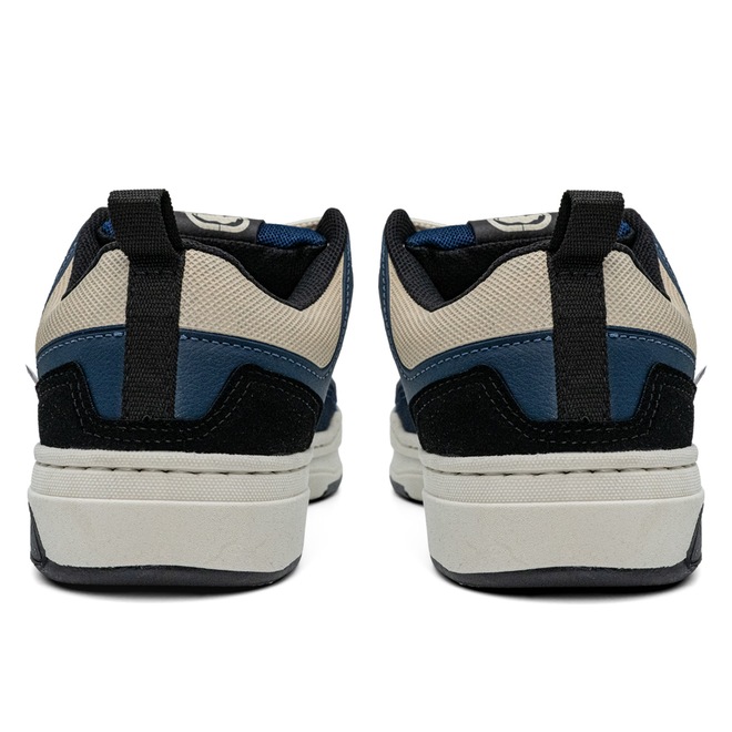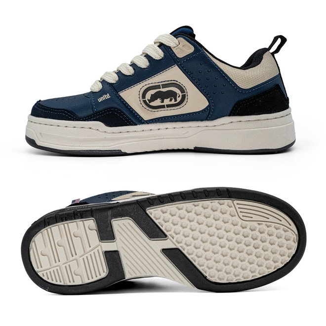 - Cabedal em Sintético: Material resistente com acabamento em off white e detalhes em marinho e preto, garantindo durabilidade e visual moderno.
