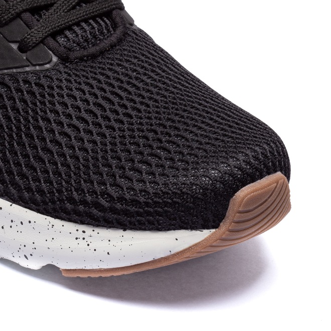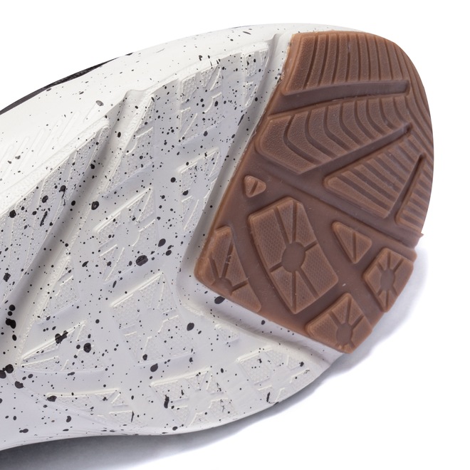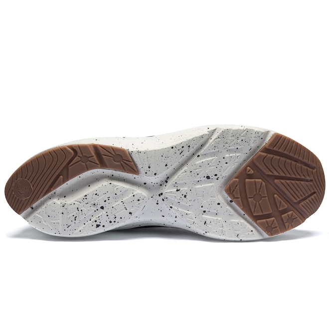 Sua entressola e solado em EVA macio garante leve e duradouro amortecimento com detalhes emborrachados em locais estratégicos para aderência e durabilidade em zonas de alto impacto.