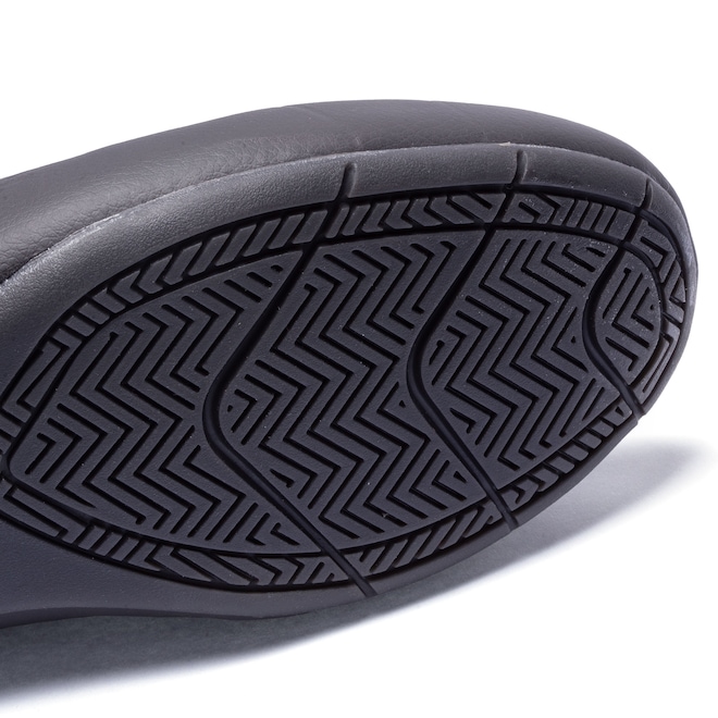 Já o solado em borracha contribui para uma aderência em todas as superfícies.