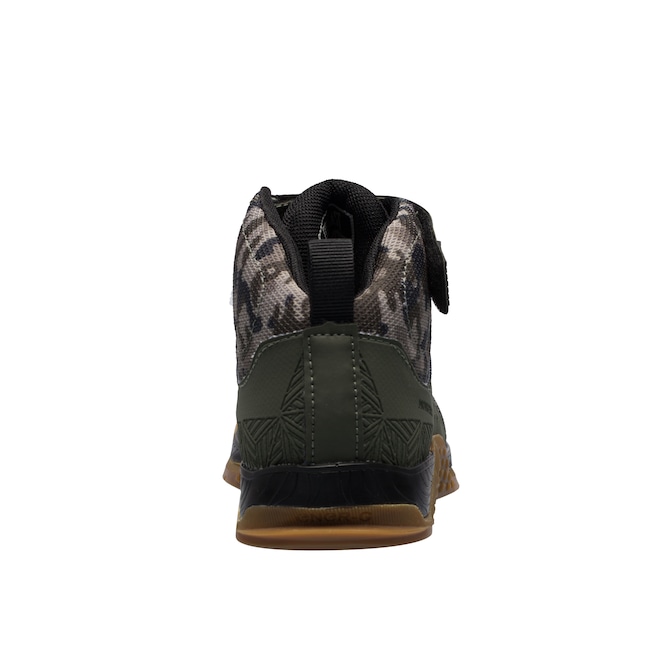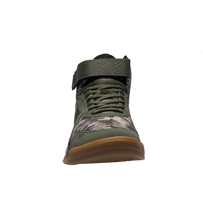 De cano médio possui ajuste por cadarço e reforço por tira em velcro para mais suporte ao tornozelo.