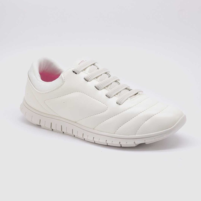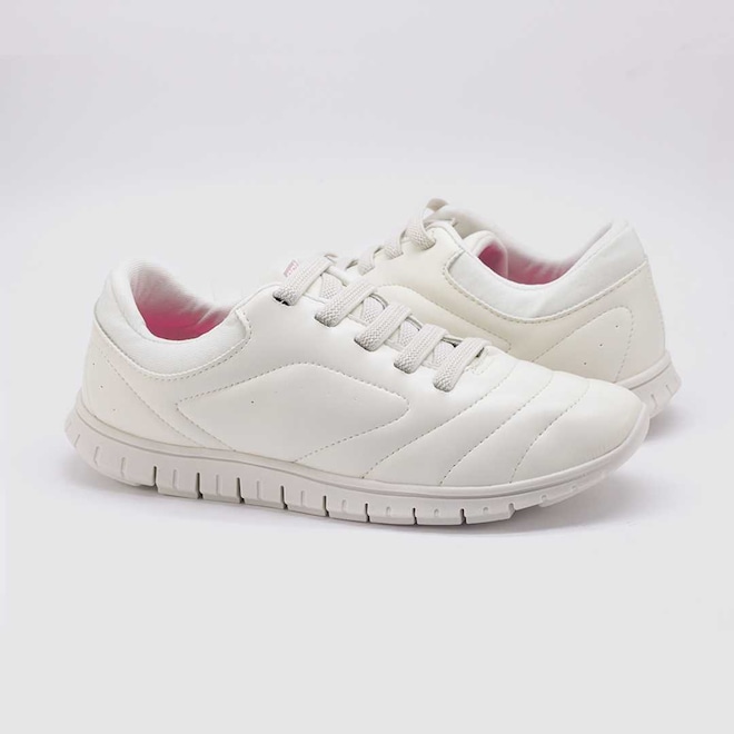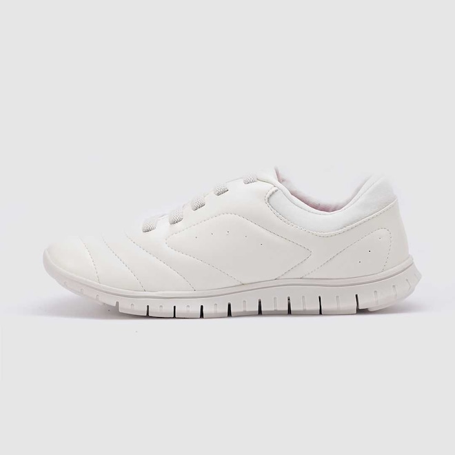 Possui palmilha macia, forro têxtil que oferece respirabilidade e solado flexível com excelente aderência. O fechamento em cadarço permite ajuste perfeito aos pés, proporcionando segurança e conforto durante o uso prolongado.