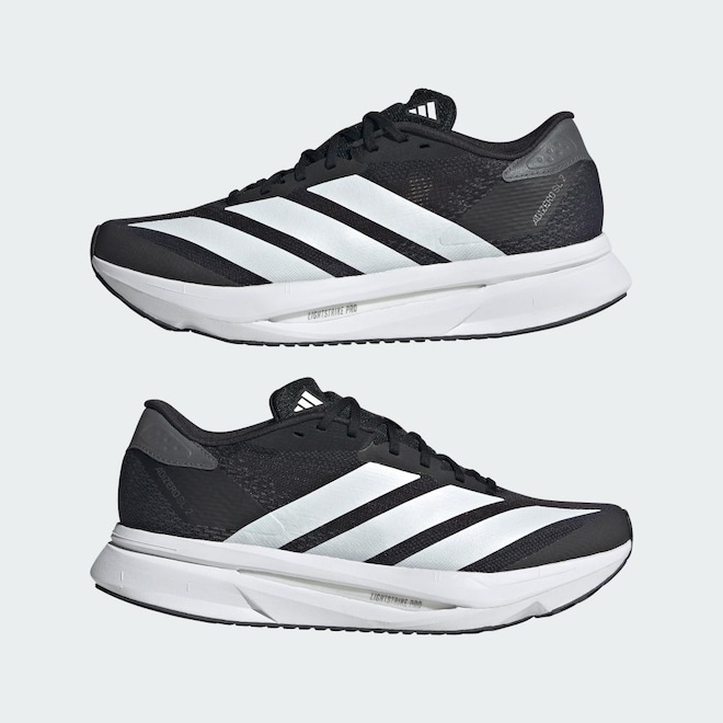 Os tênis Adizero SL2 foram desenvolvidos para quem ousa ir além dos limites, seja treinando mais a fundo ou buscando o melhor desempenho no dia da prova. Projetados com um macio cabedal em malha elástica projetada, eles oferecem suporte direcionado e respirabilidade, ajudando você a ficar confortável durante a corrida. O calcanhar e a língua levemente acolchoados melhoram a sensação ao calçar, tornando cada passada um prazer. Experimente o poder das tecnologias Lightstrike e LightstrikePro. O drop-in LightstrikePro de ponta a ponta integrado a um suporte Lightstrike proporciona amortecimento superleve e retorno de energia para movimentos dinâmicos e leves e velocidade de nível superior. O solado de borracha oferece tração confiável, ajudando você a se manter firme na estrada. Com uma modelagem padrão e fecho de cadarço, estes tênis oferecem um ajuste seguro e adaptável. Seja para treinar para uma corrida ou desfrutar de uma corrida casual, estes tênis são companheiros confiáveis. Adote a inovação na corrida com a adidas.