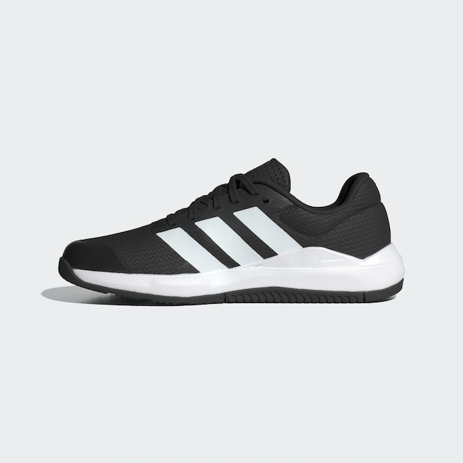Ultrapasse seus limites na sala de musculação. Esses tênis de treinamento adidas são feitos para exercícios de força. O antepé largo, a construção baixa em relação ao solo e o solado com padrão multidirecional mantêm você estável e no controle durante movimentos explosivos e levantamentos pesados. O cabedal em mesh respirável é reforçado com sobreposições 3D para maior suporte.