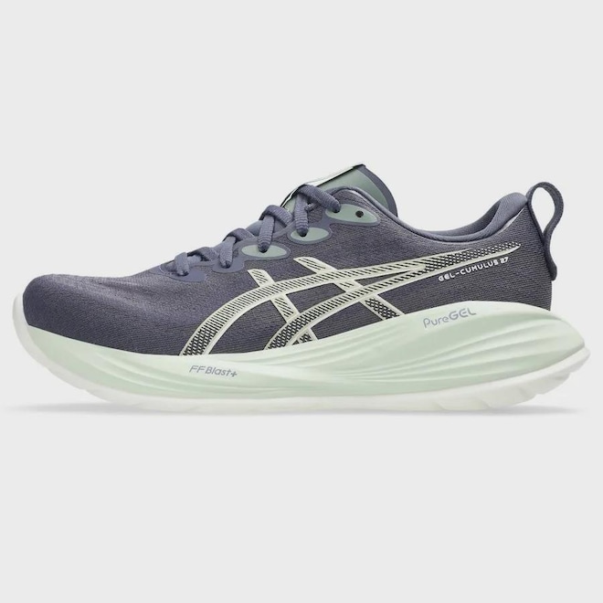 Experimente a melhor sensação em conforto com o GEL-CUMULUS™ 27. É a escolha versátil para diversos treinos e distânciasO FF BLAST™ PLUS e a tecnologia PureGEL™ estão estrategicamente posicionados na entressola. Que combinados ajudam a criar aterrissagens mais suaves e uma pisada mais energizada durante a corrida.??Além disso, o solado em FLUIDRIDE™ ajuda na eficiencia entre as passadas.Tecnologia FF BLAST™ PLUS O amortecimento proporciona absorção leve de impacto e uma recuperação responsivaTecnologia PureGEL™ Proporciona amortecimento leve e aterrissagens mais suavesCabedal em Engineered MeshMelhora a respirabilidade Solado FLUIDRIDE™ Ajuda a criar passadas mais suavesDetalhes refletivos Projetado para ajudar a melhorar a visibilidadeA palmilha é confeccionada com um processo de tingimento que reduz o uso de água em aproximadamente 33% e as emissões de carbono em aproximadamente 45% se comparada às tecnologias de tingimento convencionalPelo menos 75% do material principal do cabedal é feito com materiais reciclados para reduzir desperdícios e emissões de carbonoPalmilha OrthoLite™ X-30 Fornece conforto suave ao pisarPuxador em Knit traseiro para facilitar o calce-