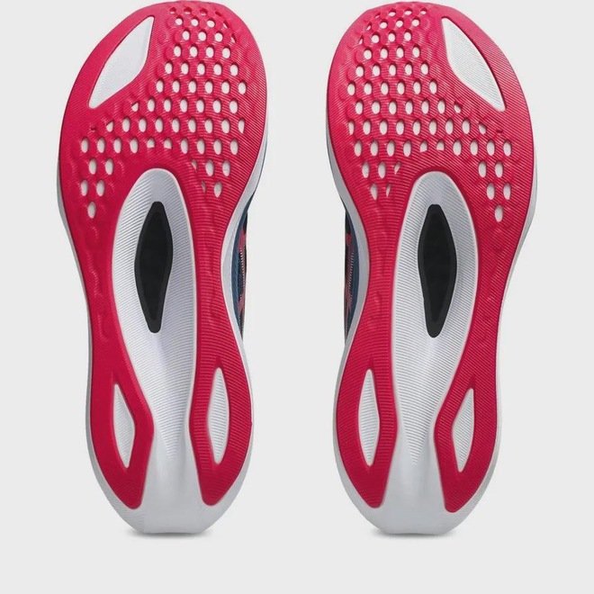 O MAGIC SPEED™ 4 foi desenvolvido para te ajudar a conquistar suas metas durante a corrida. Além da experiência de amortecimento mais suave, este calçado ajuda a estabilizar melhor sua passada. Com uma placa de carbono dentro da entressola para garantir estabilidade e impulsionar seus passos. Cria uma pisada mais macia e propulsora durante a fase inicial do ciclo de pisada. Além disso, este calçado foi atualizado com amortecimento FF TURBO™, que proporciona a sensação de uma corrida mais responsiva e energizada em treinos e competições. Cabedal em Engineered MeshMelhora a respirabilidade Pelo menos 50% do material principal do cabedal é feito com materiais reciclados para reduzir desperdícios e emissões de carbono A palmilha é confeccionada com um processo de tingimento que reduz o uso de água em aproximadamente 33% e as emissões de carbono em aproximadamente 45% se comparada às tecnologias de tingimento convencional Placa de carbono de ponta a pontaAdiciona estrutura e melhora a propulsão na fase inicial do ciclo de pisada. Amortecimento FF BLAST™ TURBO Nosso material de amortecimento mais leve e flexível, 33% mais leve e 13% mais responsivo que o amortecimento FF BLAST™ Solado de borracha ASICSGRIP™ Melhora a tração.-