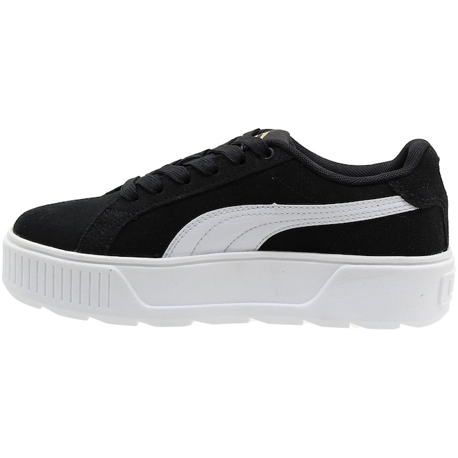 O Tênis Casual Puma Karmen SD BDP Sola Alta Grossa Feminino é a escolha ideal para quem busca estilo e conforto no dia a dia. Seu cabedal em Suede garante resistência e durabilidade, proporcionando um uso prolongado com qualidade. A palmilha conta com a tecnologia SoftFoam+. projetada para proporcionar amortecimento suave graças ao seu calcanhar extra grosso. Sua construção robusta garante suporte e estabilidade, perfeita para acompanhar sua rotina. O grande destaque fica por conta do solado plataforma de 4 cm com design tratorado, que não só eleva a altura, mas também garante excelente aderência e tração.Garanta já o seu Puma Karmen SD BDP e adicione um toque de estilo ao seu visual!