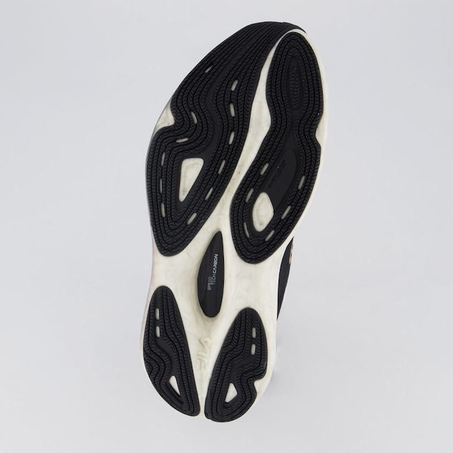 Tecnologias Ever-Grip: Composto de borracha que proporciona grip e tração superior em superfícies secas ou molhadas. Float+: Garante amortecimento e retorno de energia. Duo Mesh: Cabedal com alta respirabilidae e estrutura. Composição cabedal (parte superior): Material têxtil respirável Palmilha: Em EVA e removível; facilita na higienização Forro: Material têxtil com acolchoamento reforçado Solado: Borracha com função antiderrapante Entressola: EVA e placa com carbono Lingueta: Macia e flexível Cor predominante: Preta Indicado para: Corrida Gênero: Feminino Origem: Nacional Ajuste: Cadarço Peso aproximado: 540g o par nº 37