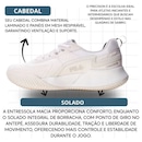 Cabedal: Material laminado e painéis em mesh respirável, garantindo ventilação e suporte