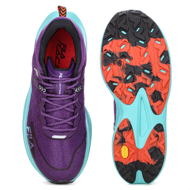 Alta performance e segurança para trilhas desafiadoras! Tênis Fila Racer Skytrail Roxo e Verde Água - Feminino Ficha Técnica: Marca: Fila Modelo: Racer Skytrail - Trail Run Cor: Roxo e verde água Indicação: Running (Trilha) Gênero: Feminino Cabedal: 90% Têxtil, 10% Sintético para resistência e durabilidade Palmilha: 90% EVA, 10% Têxtil para conforto; na vermelha Forro: Têxtil Solado: 55% EVA e 45% Borracha com tecnologia VIBRAM, oferecendo alta tração e durabilidade Fechamento: Cadarço Detalhes: Puxador traseiro, áreas refletivas para maior segurança, colarinho acolchoado para conforto e suporte, com texturas e nome da marca nas laterais do tênis Liberte sua energia com o Tênis Fila Racer Skytrail, o primeiro da marca feito especialmente para trilhas! Porque investir: Com solado Vibram de alta performance, ele oferece máxima aderência em terrenos irregulares. O cabedal leve e resistente mantém os pés firmes, enquanto a entressola em EVA garante conforto durante toda a trilha. Seja em subidas íngremes ou descidas desafiadoras, o Skytrail entrega segurança e estabilidade. Prepare-se para explorar com mais confiança. Conteúdo da embalagem: 1 par de Tênis Fila Racer Skytrail Roxo e Verde Água - Feminino