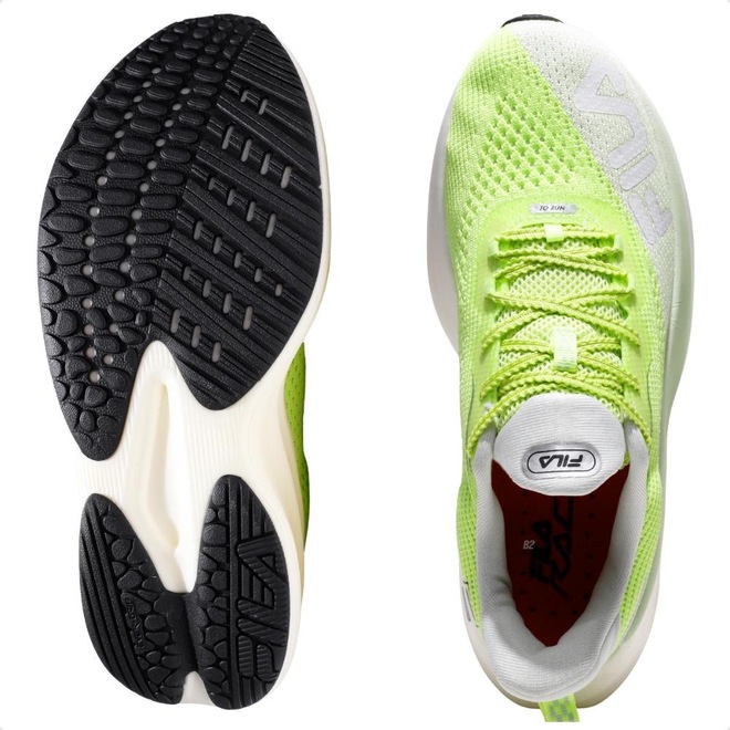 O modelo conta com as tecnologias S-KNIT, estrutura no calce, resistência e respirabilidade, SPEED TECH FOAM, alta responsividade e resiliência, e borracha EVER-GRIP, aderência e durabilidade superior.
