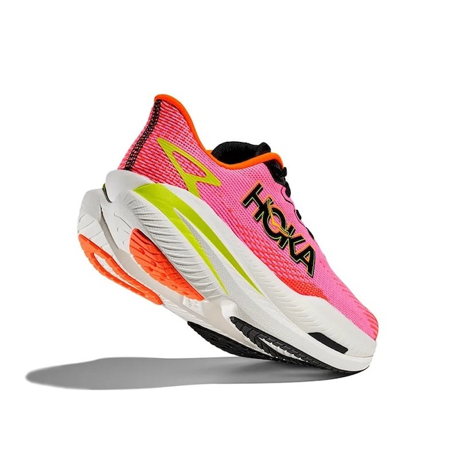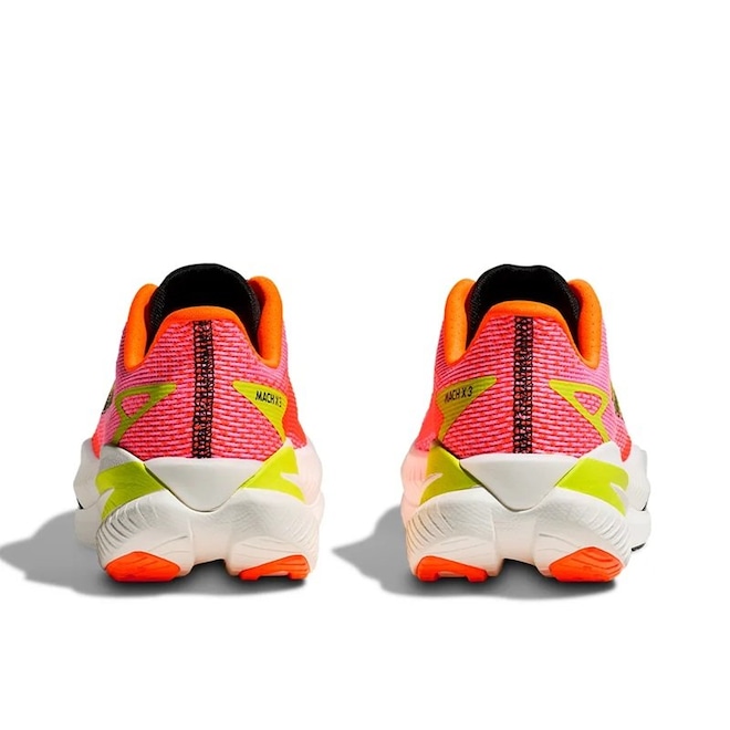 A sola conta com borracha estrategicamente posicionada, garantindo tração e durabilidade sem adicionar peso desnecessário. Toda a geometria do tênis foi desenvolvida para promover transições suaves, tornando o Mach X 3 uma opção versátil tanto para treinos de intensidade quanto para rodagens rápidas.