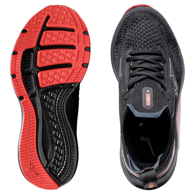 Confeccionado em knit respirável, o cabedal oferece conforto e ajuste perfeito aos pés. Reforços em material sintétic garantem maior durabilidade e estrutura.
